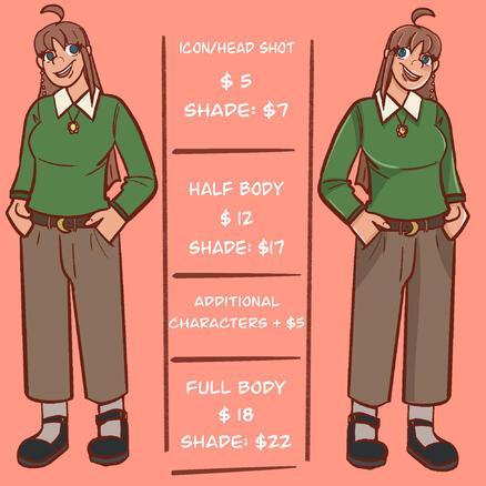 I have carpel tunnel syndrome so at times I need to take a break from drawing meaning I may not post for a few weeks and commissions would not be open. I only take 5 slots due for this reason.